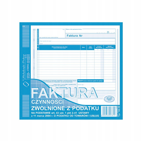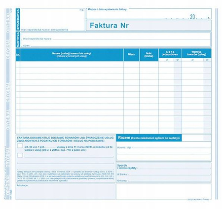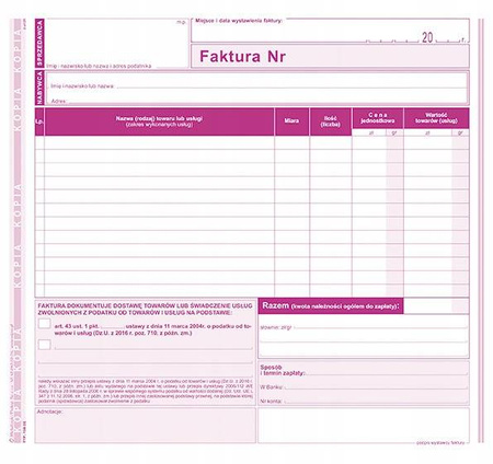 Rodzaj: | faktura dla zwolnionych z podatku |
