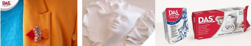 Samoutwardzalna (bez potrzeby wypalania) glinka modelarska. Czas schnięcia 24h na 1cm. Łatwa w formowaniu. Może być używana wraz z drewnem, kartonem czy terakotą. Można użyć farb i lakieru do dekoracji gotowej rzeźby. Obiekty wykonane z glinki Das są solidne i trwałe.