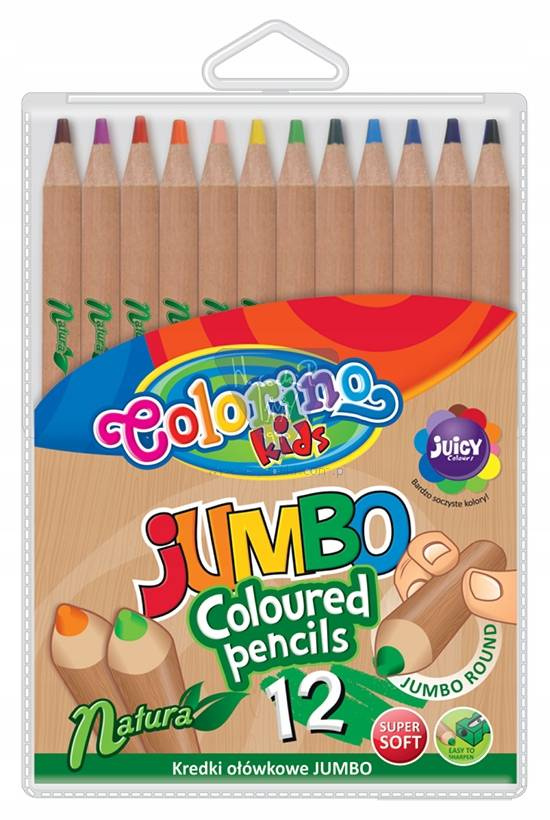 Zestaw 12 kredek ołówkowych JUMBO oprawionych w naturalne drewno.
