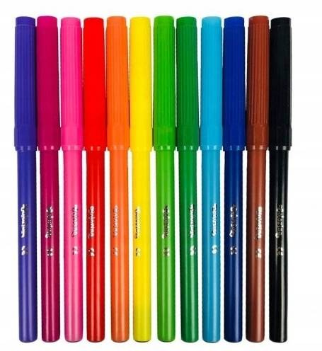 Klasyczne flamastry z cienką 2 mm końcówką w zestawie, 96 szt. w 12 kolorach. . Idealne do rysowania precyzyjnych kształtów lub pisania. Zapakowane w plastikową tubę z rączka, ułatwiającą przechowywanie i przenoszenie. Wysokiej jakości tworzywo, wentylowana skuwka, zmywalny tusz.