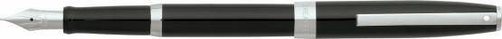 Pióro Sheaffer Sagaris posiada korpus i skuwkę pokrytą błyszczącym lakierem w kolorze czarnym, wykończenia chromowane.