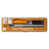 PILOT PARALLEL PEN - pióro stworzone dla przyjemności z pięknego i niepowtarzalnego pisma odręcznego. Ten produkt piszący jest rezultatem naszego rozwoju. Stalówka, składająca się z dwóch płytek, pozwala użytkownikowi na ładniejsze i kształtniejsze pismo niż dotychczasowe artykuły do kaligrafii. Może być wykorzystany także do uzyskiwania ciekawego stopniowania kolorów, przez zmieszanie ich między stalówkami dwóch piór. PARALLEL PEN jest wielkim przełomem w piórach do kaligrafii. Słowo kaligrafia pochodzi z języka greckiego od piękna (calli) i pisania (graphy). Tradycyjna kaligrafia popularna jest już od czasów średniowiecznych, jako kreatywna ekspresja naturalnego piękna ludzkich uczuć i natury. Fascynuje ona ludzi od lat. Dziś, ze względu na olbrzymie skomputeryzowanie komunikacji, wierzymy, że nasze nowe pióro zwiększy radość, jaką możemy czerpać z wyrażania siebie w indywidualny sposób, wykorzystując piękne pismo odręczne. Bezpieczna wentylowa skuwka. Cztery rozmiary stalówki: 6; 3,8; 2,4; 1,5.