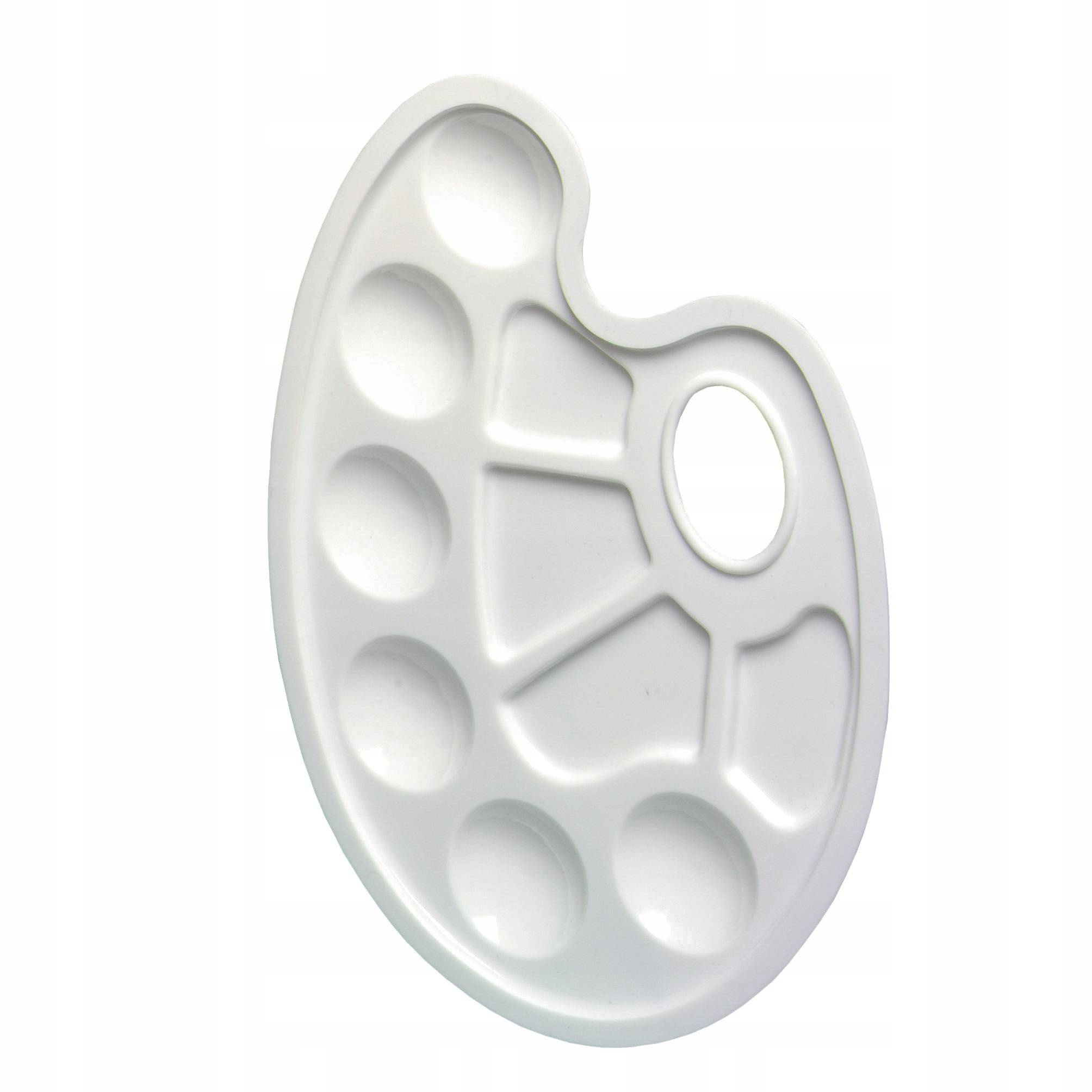 Wykonana z białego plastiku, posiada 10 wgłębień do mieszania kolorów. Zaopatrzona w uchwyt umożliwiający korzystanie z palety w pozycji stojącej.