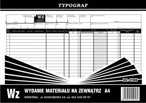 WZ Wydanie materiału na zewnątrz A4 TYPOGRAF * Indeks: 01056