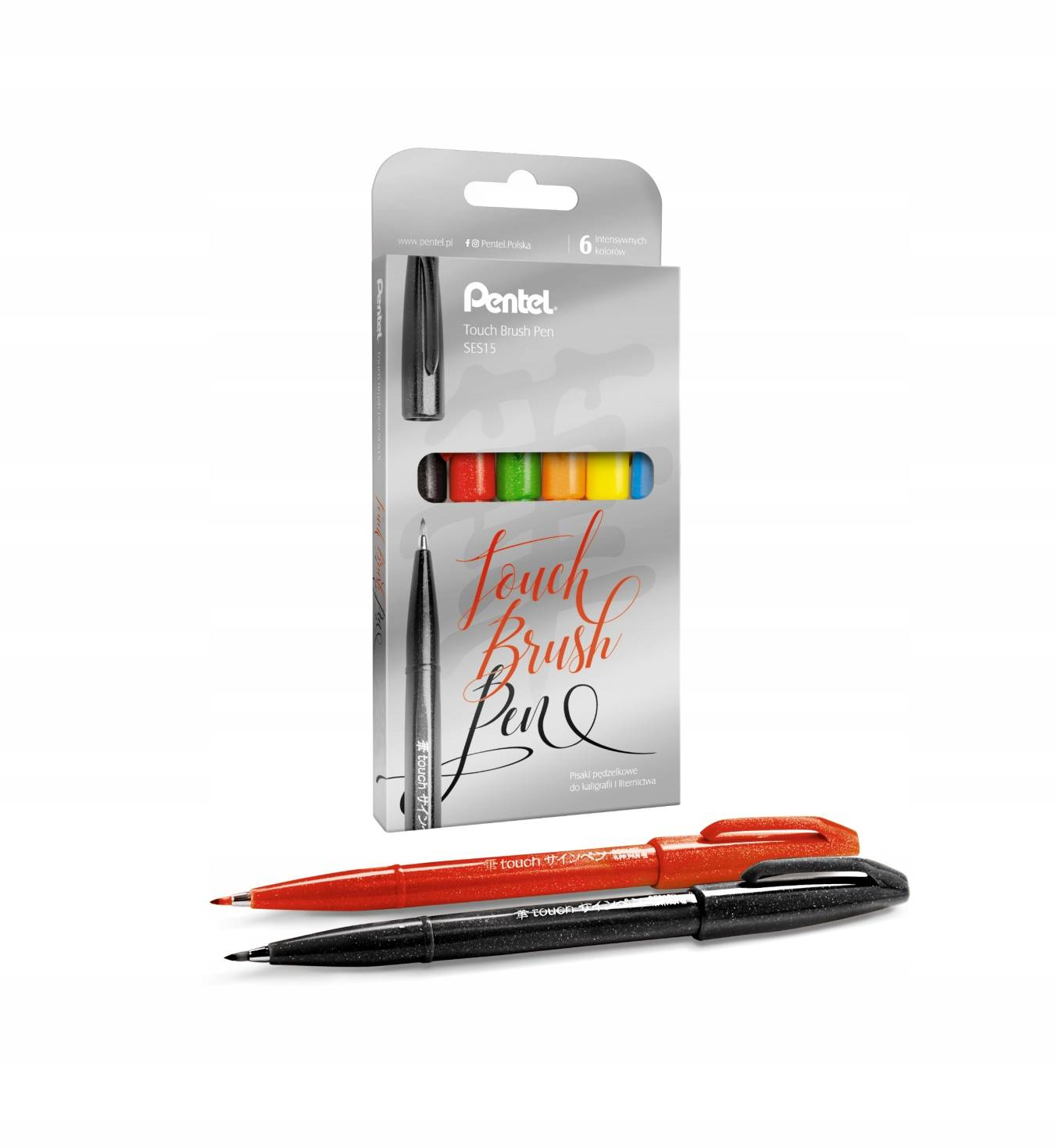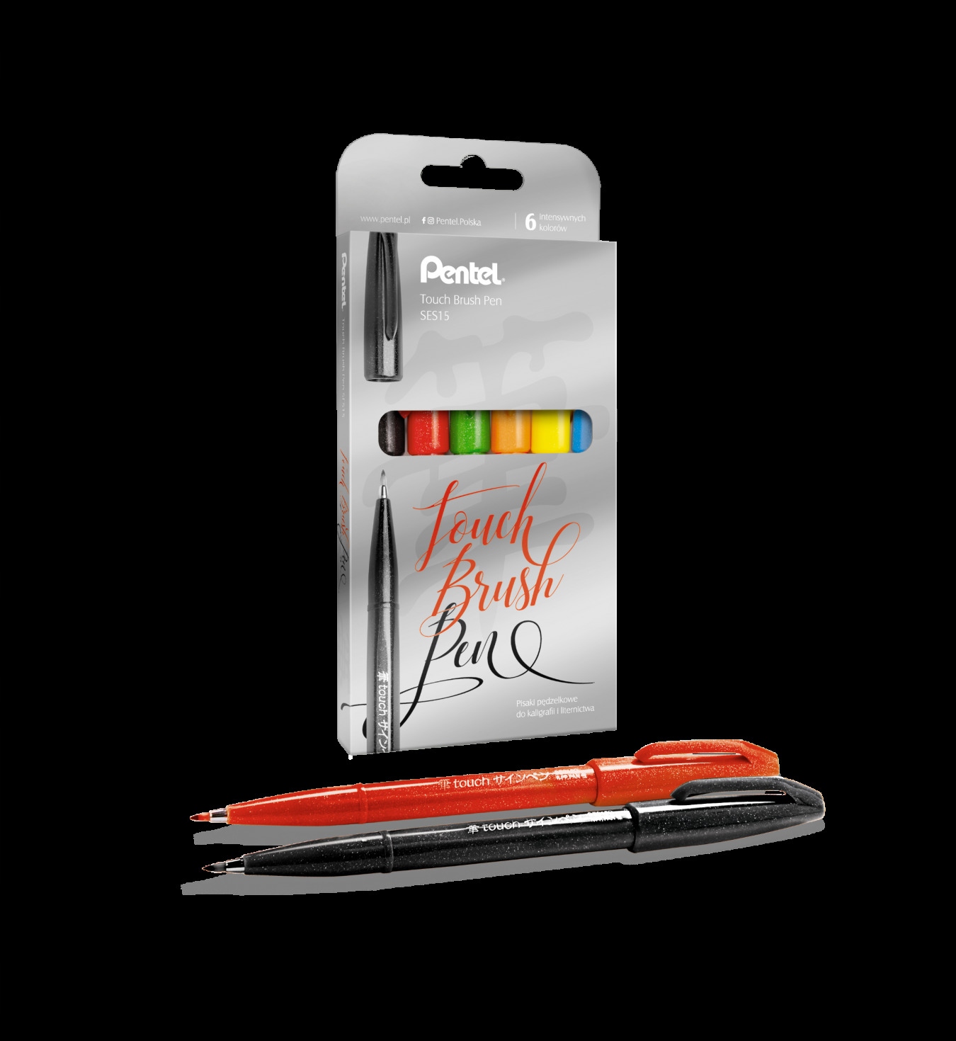 Zestaw zawiera pisaki w szesciu kolorach - czarny, czerwony, zielony, pomarańczowy, żółty, niebieski.
