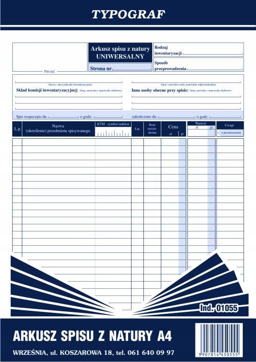 Arkusz spisu z natury Typograf 01055 A4 80 kartek.