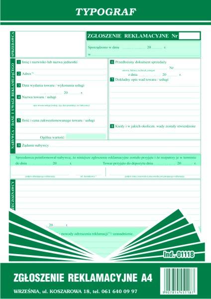 Zgłoszenie reklamacyjne Typograf 01118 A4 80 kartek.