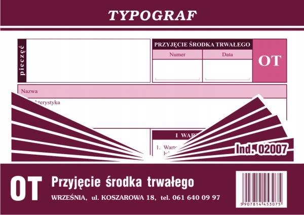 Przyjęcie środka trwałego Typograf 02007 A6 80k