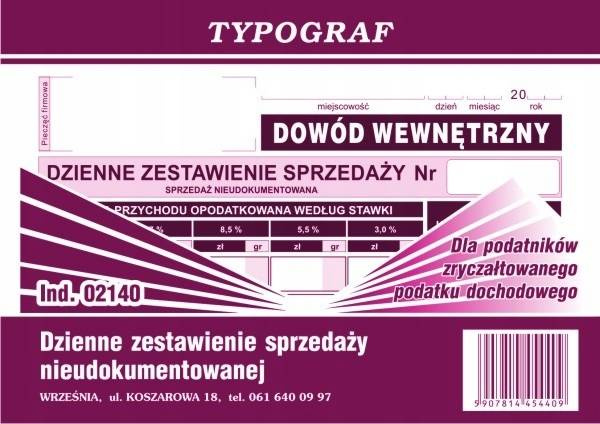 Dzienne zestawienie sprzedaży nieudokumentowanej Typograf 02140.