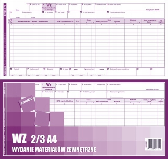 Rodzaj: | wydanie materiałów na zewnątrz WZ |
