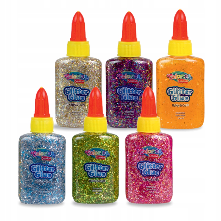 Klej dostępny w 6 kolorach do wyboru: złotym, srebrnym, pomarańczowym,zielonym i czerwonym.