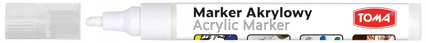 Marker z fibrowa końcówką 2,5 mm, z szybkoschnącą farbą akrylową w 22 kolorach, bezzapachowe, nietoksyczne, bez xylenu i toulenu.