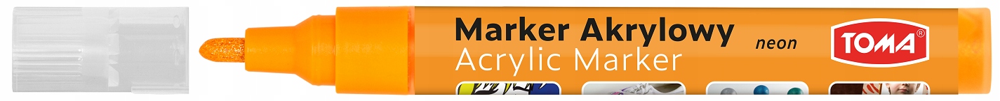 Marker z fibrowa końcówką 2,5 mm, z szybkoschnącą farbą akrylową w 22 kolorach, bezzapachowe, nietoksyczne, bez xylenu i toulenu.