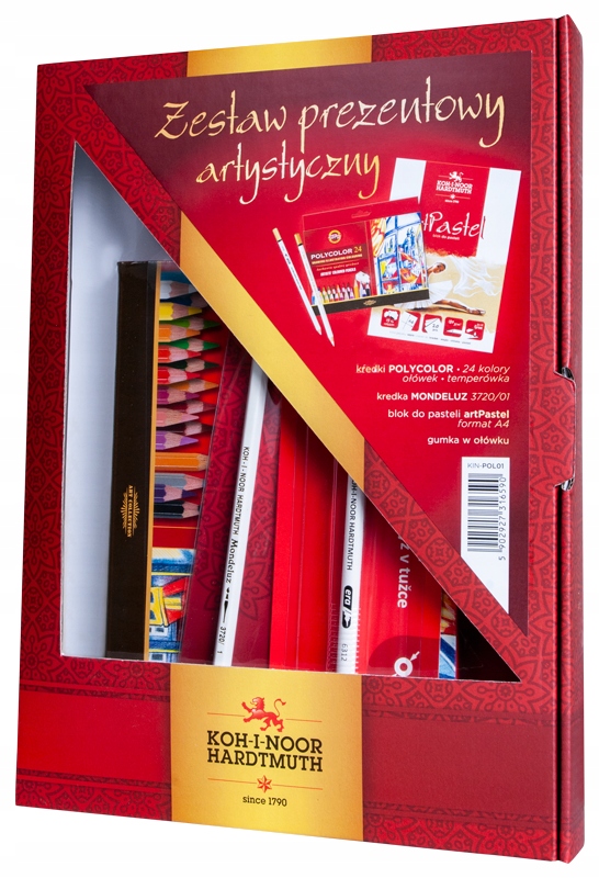 - kredki Polycolor w 24 kolorach - profesjonalne kredki artystyczne. Zostały wykonane z najwyższej jakości materiałów, dzięki czemu zapewniają miękkie rysowanie, trwałe i intensywne kolory. Ich oprawki wykonane są z wysokiej jakości drewna cedrowego oraz polakierowane kilkunastoma warstwami lakieru. Kredki posiadają zaokrąglenia w kolorze złotym.