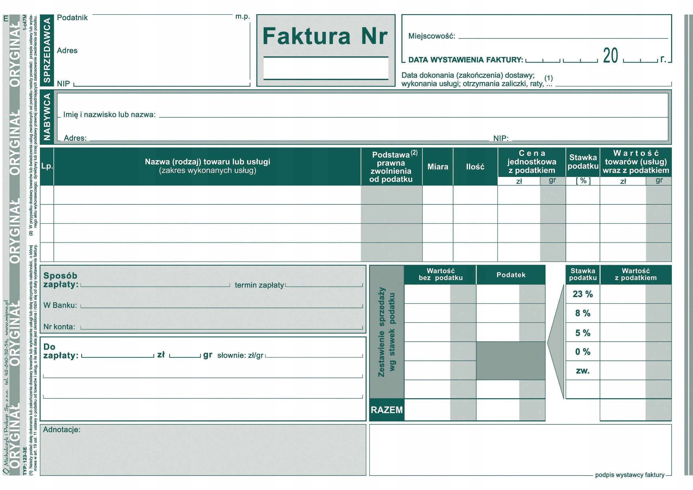 druk faktury dla prowadzących sprzedaż w cenach brutto - wzór uproszczony