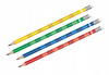 Miękko piszący, okrągły ołówek z gumką oraz tabliczką mnożenia.