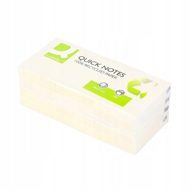 BLOCZEK SAMOPRZYLEPNY Q-CONNECT 100% RECYCLED, 38X51MM, 3X100 KART., ŻÓŁTY