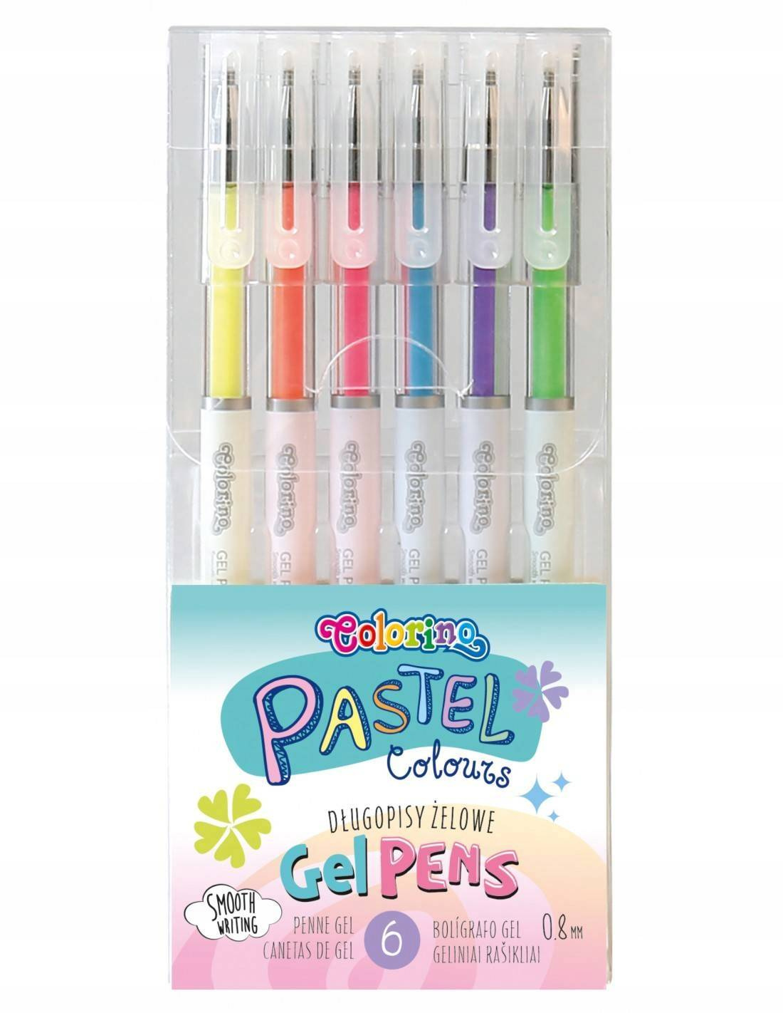 Długopisy żelowe - 6 pastelowych kolorów: żółty, morelowy, różowy, lila, błękitny, zielony