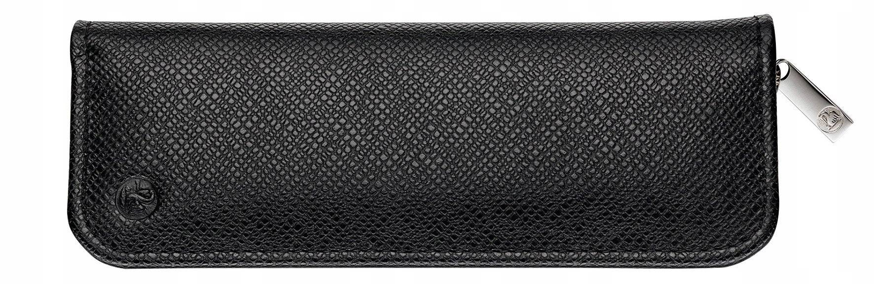 Eleganckie skórzane etui wykonane z czarnej skóry cielęcej okaże się być idealnym towarzyszem Twoim i Twojego pióra w każdej sytuacji, bez względu na to czy zabierzesz jedno, dwa lub trzy instrumenty piśmienne.