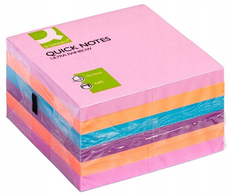 ZESTAW BLOCZKÓW SAMOPRZYLEPNYCH Q-CONNECT, 76X76MM, 6X80 KART., MIX KOLORÓW
