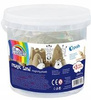 – można bawić się w domu – miękka i gładka faktura – aksamitny w dotyku – bezpieczny dla dzieci i bezglutenowy – nigdy nie wysycha i może być używany wielokrotnie – ma specjalną strukturę, która pomaga w utrzymaniu czystości, nie klei się – pozwala na łatwe modelowanie i formowanie kształtów rękami lub za pomocą foremek – kolor naturalny 2500 g – pakowany w wiaderko – zgodny z wymaganiami UE