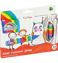 – grube – jaskrawe, wyraziste kolory – kryjące: kolejne warstwy dokładnie pokrywają poprzednie – zgodne z wymaganiami UE – średnica kredki okrągłej 14 mm – 12 kolorów