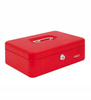 – metalowa kasetka lakierowana, o zaokrąglanych brzegach – zamykana na kluczyk (w zestawie 2 kluczyki) – posiada plastikową tackę z 5 przegródkami – wymiary: 82 x 192 x 262 mm