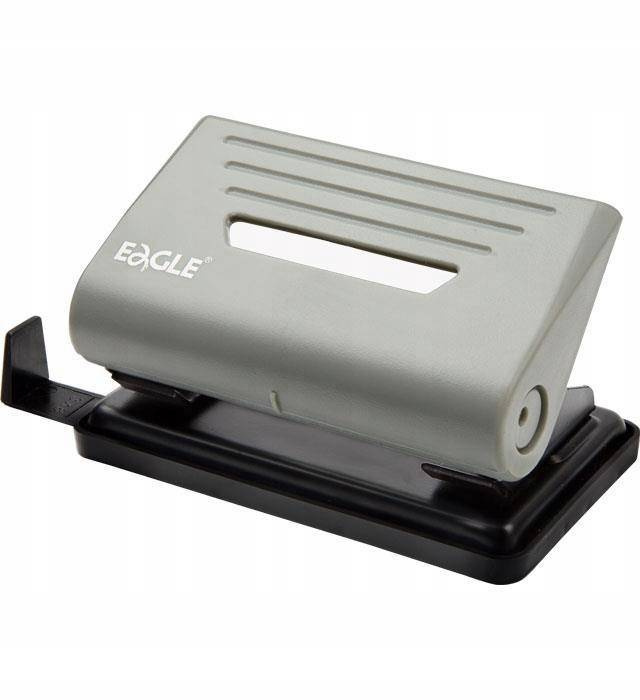 – metalowa konstrukcja – ergonomiczne ramię z trwałego tworzywa – pojemnik na odpady z tworzywa sztucznego nierysującego podłoża – podwójny wskaźnik środka strony – listwa formatowa – dziurkuje do 12 kartek – średnica dziurki 5,5 mm – rozstaw dziurek 80 mm – gwarancja 3 lata