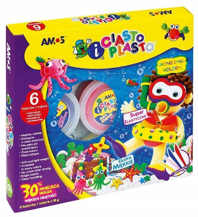 – masa plastyczna przeznaczona dla dzieci powyżej 4 lat – łatwo poddaje się modelowaniu – dostępna w żywych kolorach, które mogą być dowolnie mieszane – miękka i lekka, nawet po wyschnięciu – nie brudzi rąk i powierzchni – nie łamie się, nie pęka i nie kruszy – odbija się od różnych powierzchni jak piłka – nie wymaga wypalania ani wypiekania, wysycha pod wpływem powietrza – nie zawiera glutenu – w zestawie: 6 kolorów, narzędzia, instrukcja – pojemność: 6 x 18 g – zgodne z wymaganiami UE i normą ASTM D-4236