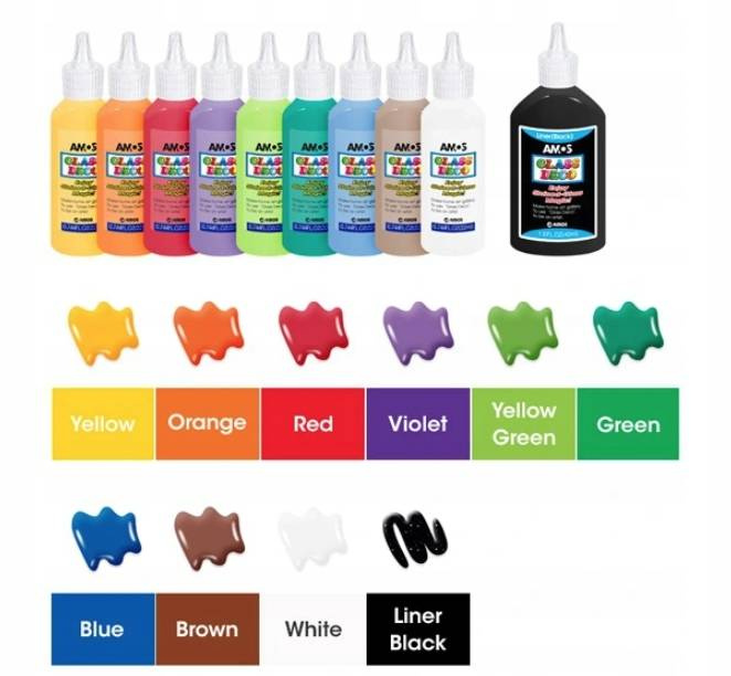 • Farby witrażowe AMOS GD22P10 - 22 ml x 10 kolorów