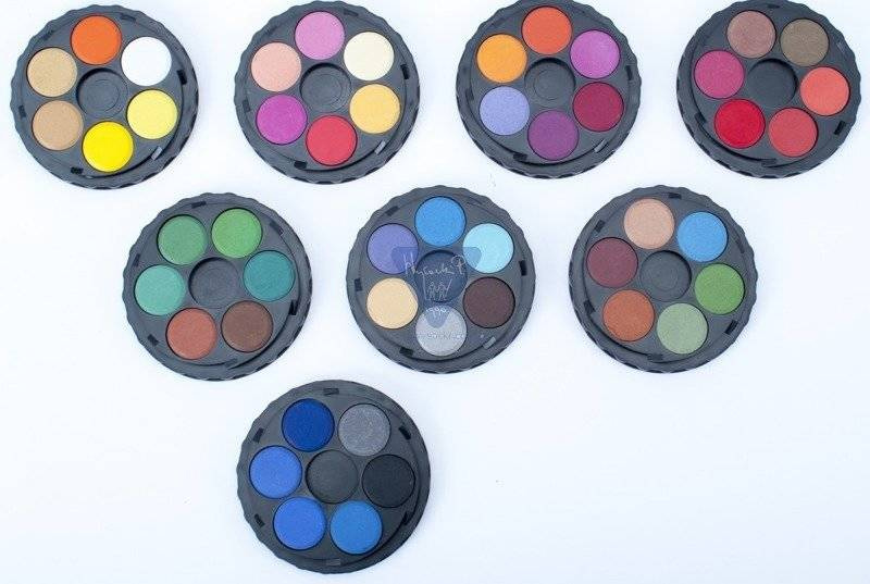 Farby akwarelowe zapewniające intensywne, trwałe kolory o wysokiej sile krycia. Zapewniają doskonałe efekty na papierze oraz kartonie. Komplety farb w postaci krążków zawierających 6 kolorów. Krążki można ze sobą łączyć uzyskując ilość od 6 do 48 kolorów. Komplety zawierają pastylki o średnicy 22,5 mm.