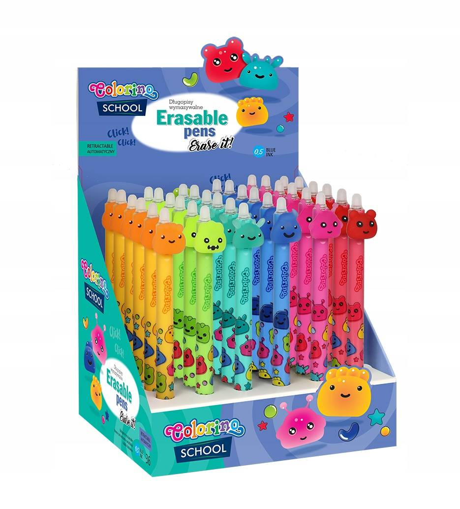 DŁUGOPIS WYMAZYWALNY DLA DZIECI COLORINOJELLY HEADS 1 SZT innowacyjny, wymazywalny długopis z opatentowaną formułą tuszu, który pisze jak długopis i wymazuje się jak ołówek