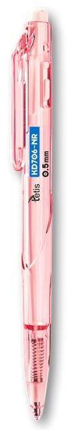 Długopis z bocznym automatem chowania wkładu. Tusz olejowy. Grubość linii pisania: 0,5 mm.