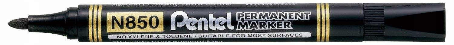 Marker permanentny PENTEL N850 skutecznie i trwale oznacza wybrane materiały,pewnie czuje się niemal na każdej powierzchni: metalu, szkle, plastiku, gumie, grubym papierze, drewnie.