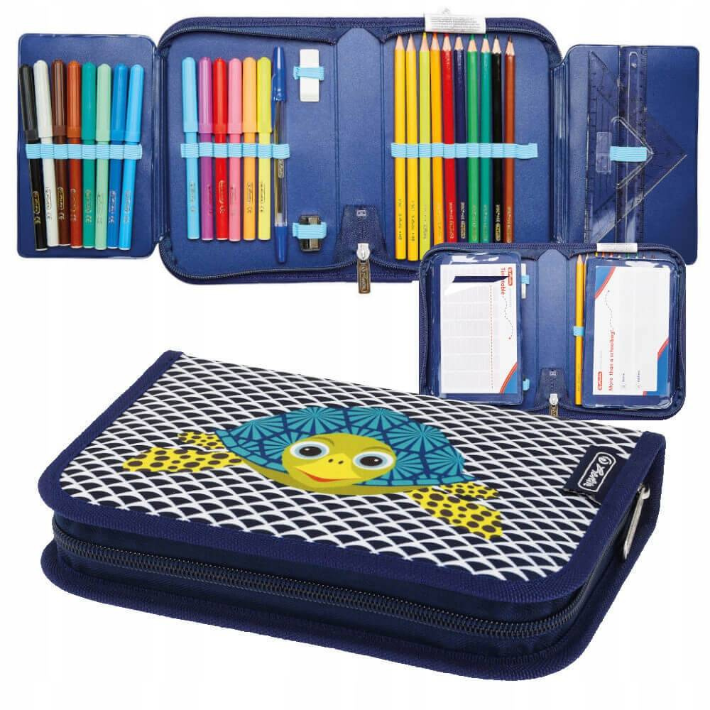 - wyposażony w wysokiej jakości kredki, pisaki, ołówek, temperówkę, gumkę oraz linijkę,