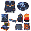 Ergonomicznie ukształtowane i wykonane z przepuszczającego powietrze plecy tornistra, miękko wyściełane szelki, łatwe zapinanie za pomocą klamry ze światełkiem odblaskowym, dwie otwarte boczne kieszenie ze ściągaczem, przednia kieszeń zapinana na zamek, wewnętrzna przegroda organizująca przestrzeń tornistra, materiał łatwy do czyszczenia, plastikowa kieszonka z planem lekcji na wewnętrznej stronie górnej klapy, stabilna plastikowa podstawa, materiał odblaskowy na przedniej i bocznych kieszeniach oraz na szelkach.