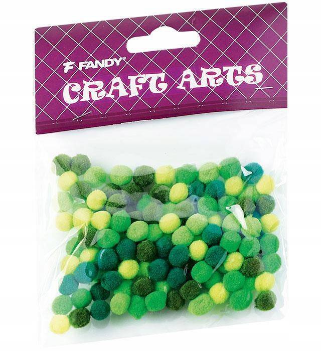 – puszyste kolorowe pompony – idealne do prac plastycznych i dekoracji – pomagają w rozwijaniu zdolności manualnych oraz wyobraźni dziecka – miks kolorów w odcieniach zielonego – 120 szt. – zgodne z wymaganiami UE