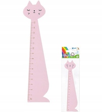 – linijka drewniana w zabawnym kształcie kota – posiada skalę w cm wraz z jednostkami pomocniczymi mm – może służyć też jako szablon do odrysowania kształtu – długość pomiaru 15 cm – grubość 3 mm
