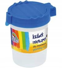 – zabezpiecza miejsce prac plastycznych – posiada zakrętkę z otwieranym wieczkiem – dodatkowe wgłębienia umożliwiają wygodne układanie pędzli np. w trakcie suszenia