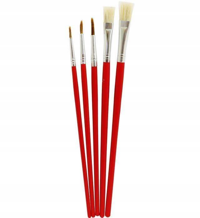 – do farb olejnych i akwareli – artystyczne, 2 płaskie i 3 szpiczaste – drewniana rękojeść, metalowe okucie – jasne włosie – szczecina, żółte włosie – kozie – opak. blister 5 szt. – rozmiary: 2,4,6,8,12