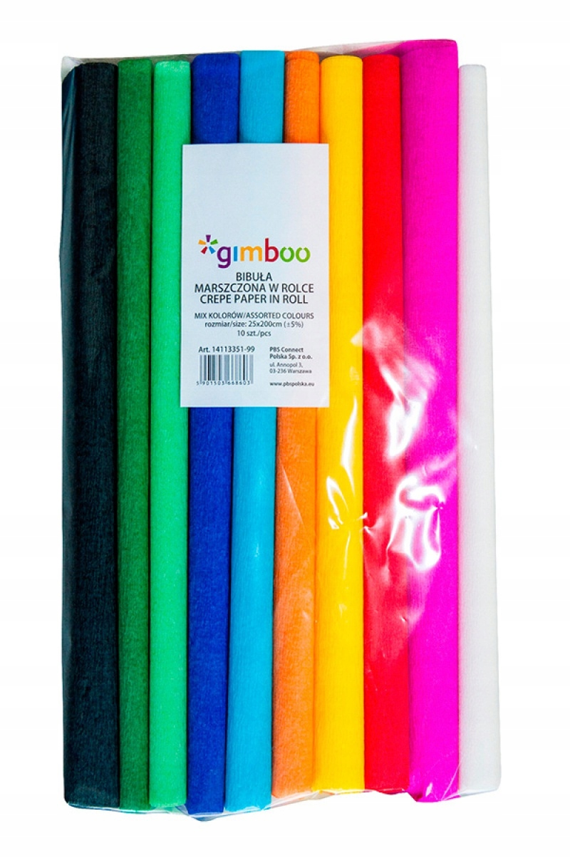 BIBUŁA MARSZCZONA GIMBOO, W ROLCE, 25X200CM, 10SZT., MIX KOLORÓW