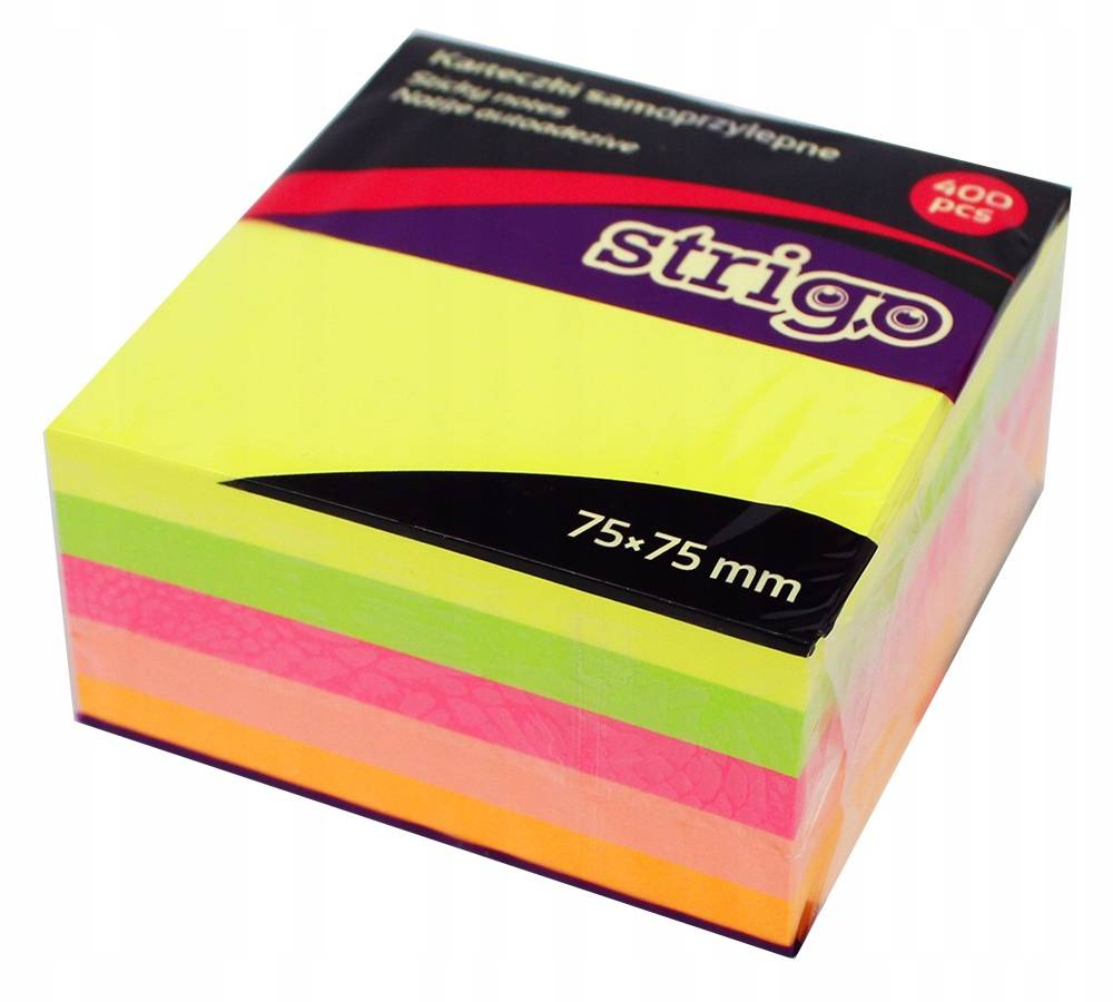 Karteczki samoprzylepne o wymiarach 75x75 mm. Bloczek zawiera 400 karteczek