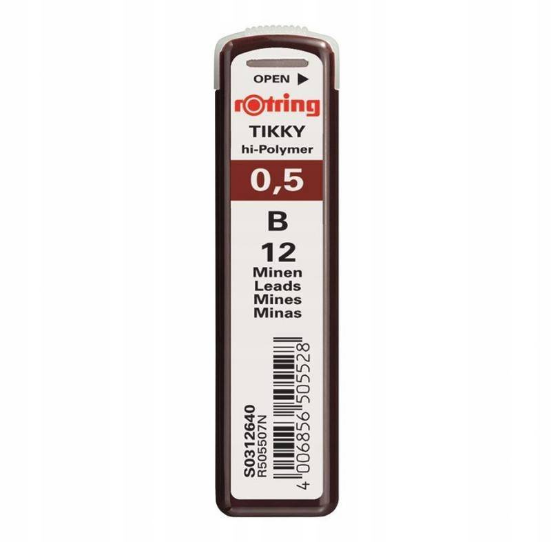 Zestaw 12 grafitów do ołówków automatycznych o twardości B.