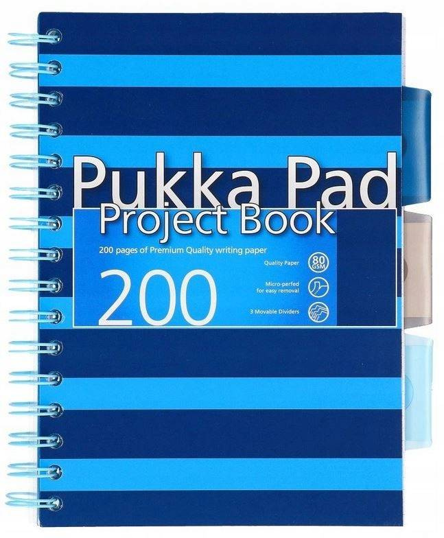 Kołoszeszyt A5 w kratkę od Pukka Pads, Navy, niebieski. Posiada przezroczystą okładkę PP i wyjmowane, kolorowe przekładki z kieszonkami na etykiety. Pozostałe dane techniczne: