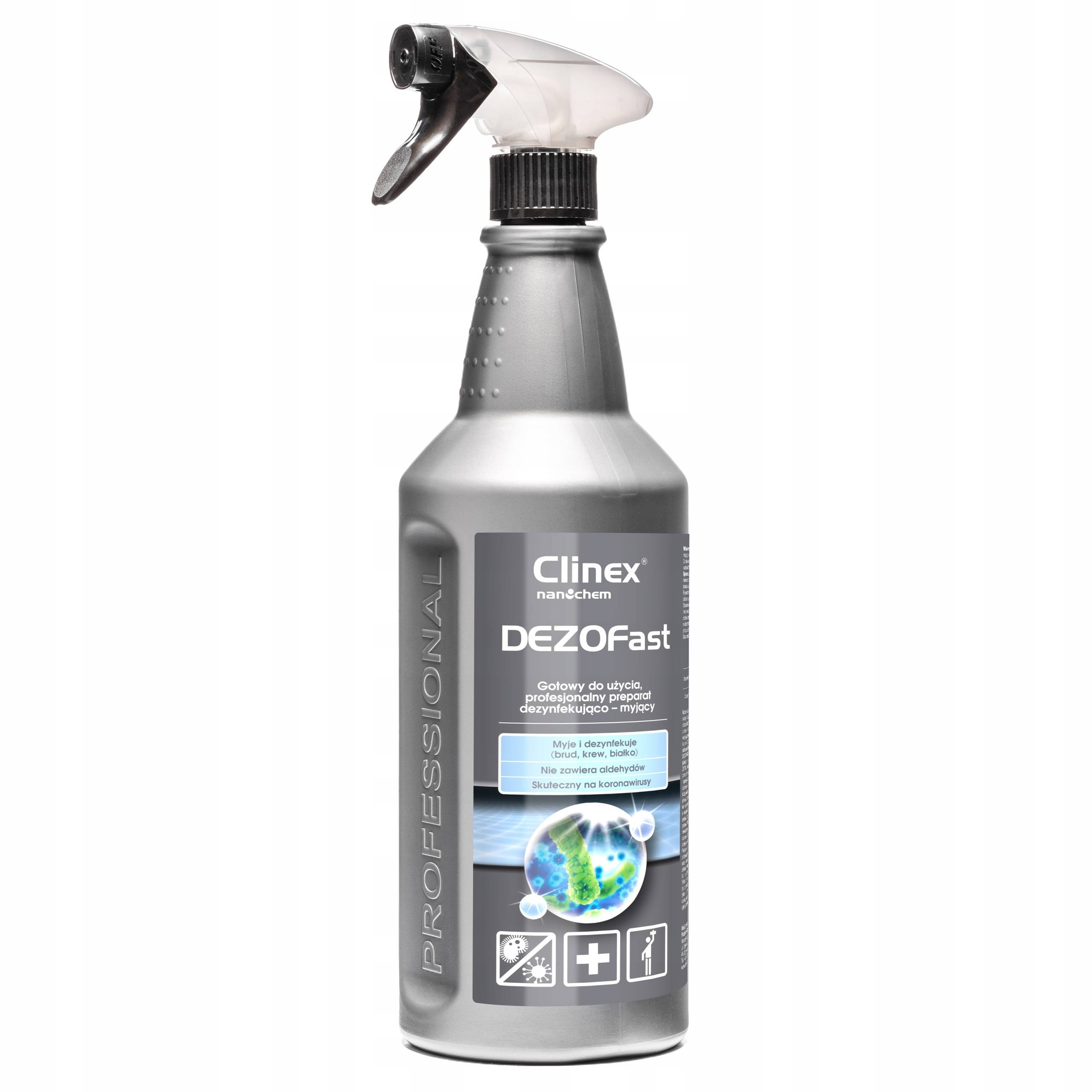 profesjonalny preparat dezynfekująco-myjący o działaniu bakteriobójczym, grzybobójczym i wirusobójczym przeznaczony do dezynfekcji powierzchni mających kontakt z żywnością, w miejscach użyteczności publicznej oraz w obszarze medycznym (poza klinicznym) do stosowania w szpitalach, domach opieki, hospicjach, szkołach, centrach fitness, restauracjach, kuchniach itp. produkt gotowy do uzycia pojemność: 1000ml