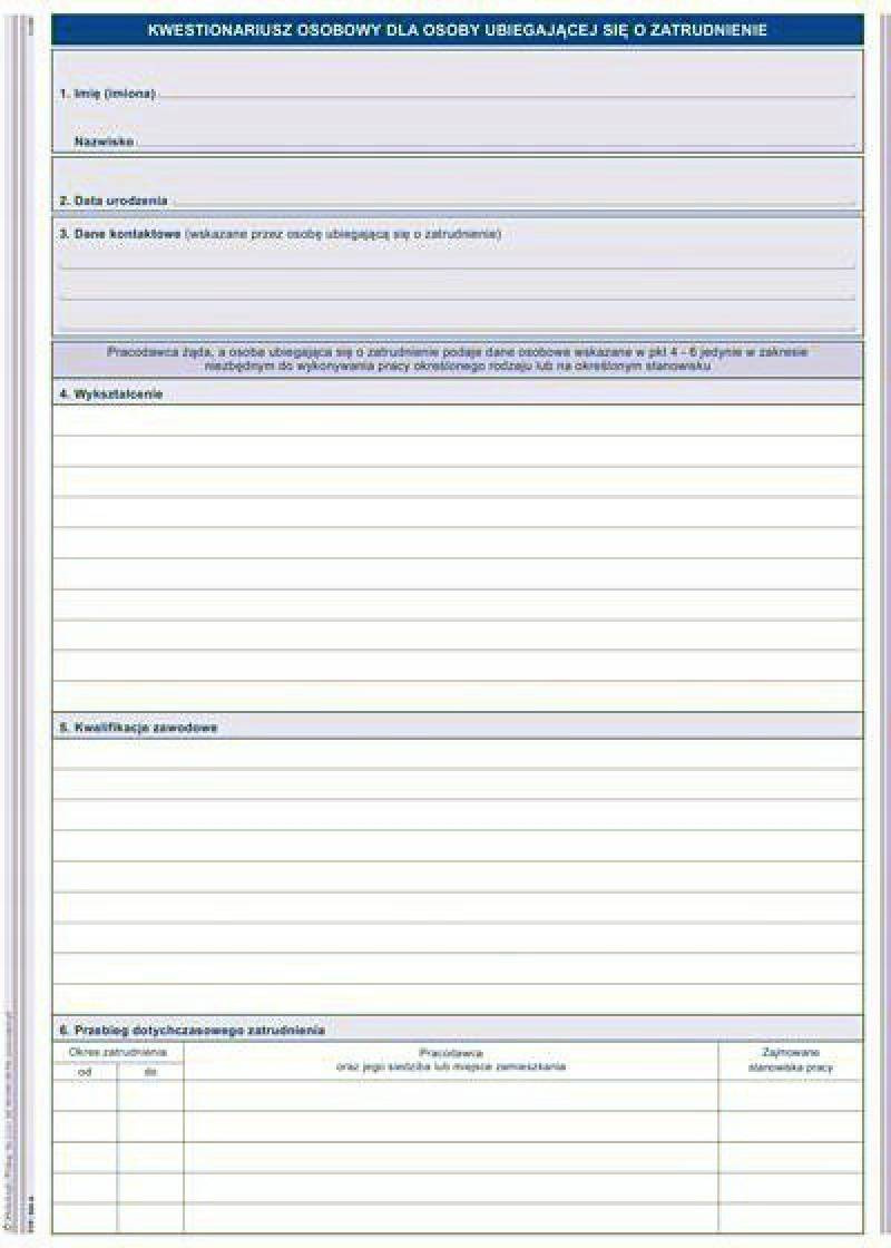 Michalczyk i Prokop 504-A Kwestionariusz osobowy dla osoby ubiegającej się o zatrudnienie format:A4