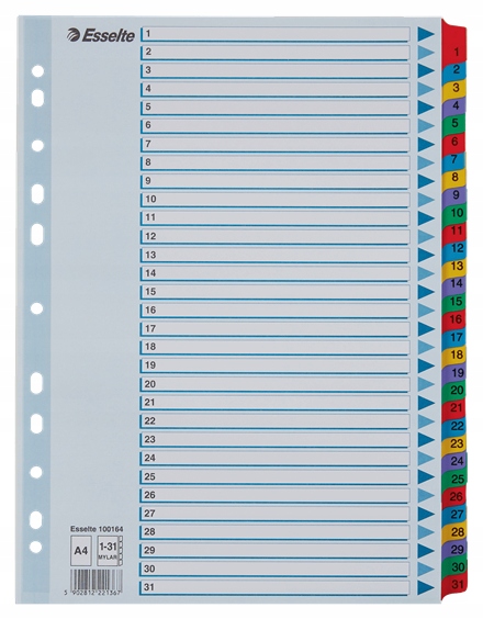 - 31 zadrukowanych numerycznie indeksów (1-31) do łatwego sortowania