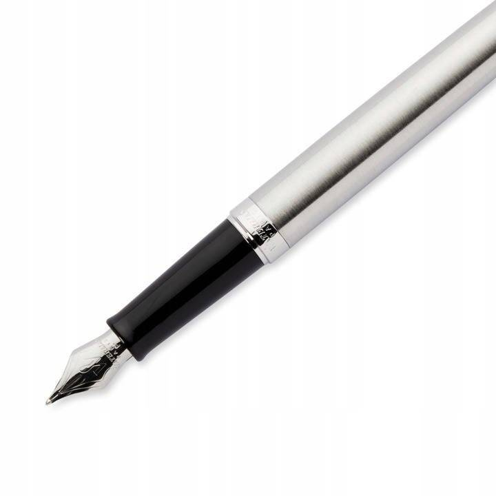 Pióro wieczne Waterman Hemisphere to wyjątkowe połączenie eleganckiego koloru szczotkowanej stali z satynowym połyskiem ze złotymi wykończeniami.