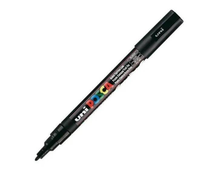 Uniwersalny marker UNI PC-3M z farbą plakatową do pisania i malowania po każdej powierzchni: papierze, tkaninie, plastiku, terakocie, szkle, porcelanie, metalu, drewnie