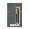 "Odkryj zestaw pióra wiecznego i pasującego długopisu w klasycznym opakowaniu prezentowym Parker. Zestaw pozwala piszącemu na elastyczny wybór pomiędzy dwoma sposobami pisania, co sprawia, że będzie przemyślanym i wyrafinowanym prezentem, odpowiednim na każdą okazję. W zestawie: pióro wieczne i długopis IM Black Lacquer ze złotymi wykończeniami"